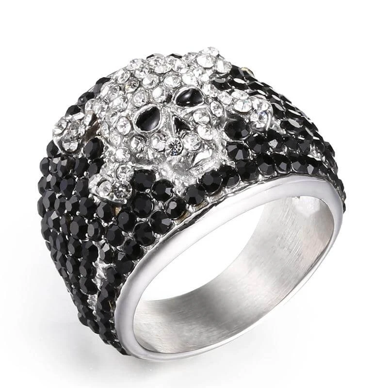 Un pirate blingbling reste un pirate ! Le capitaine te présente aujourd’hui la bague acier pirate en Diamant ! Cette sublime bague dispose de strass de couleurs blanc et noir ! Elle sera parfaite au doigt d’un grand pirate viril ! Tu attireras l’intention et tu imposeras ton propre style, quel que soit l’avis des autres ! La bague est forgée en acier inoxydable, elle te portera une prestance unique !