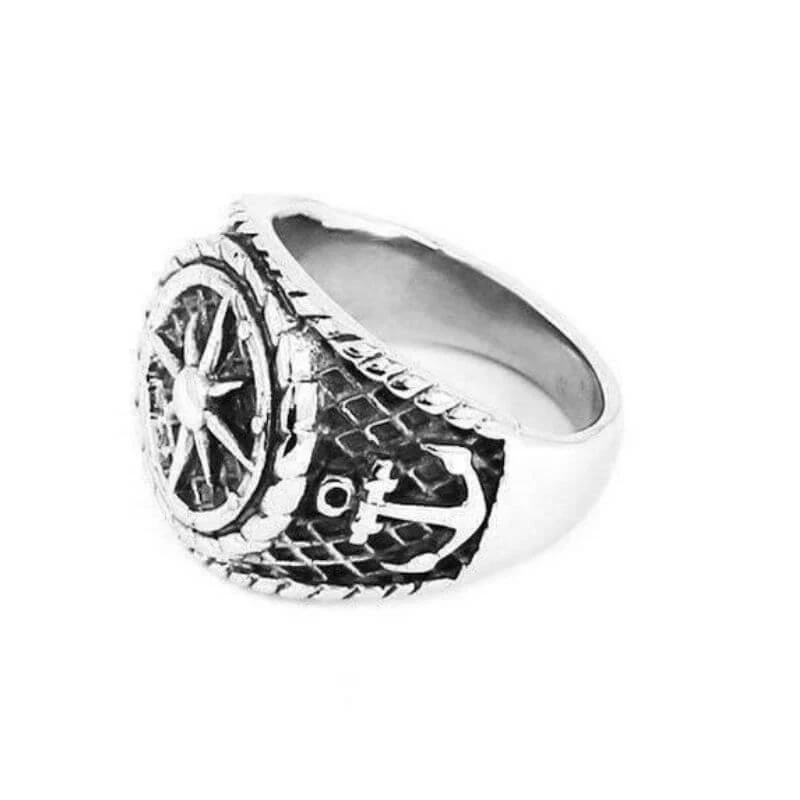 Voici la bague pirate boussole ! La boussole était l’un des éléments les plus importants pour les pirates. La boussole a été inventée entre 1300 et 1302 en Europe par Flavio Gioja ! bien avant l’âge d’or de la piraterie. La bague et orné de détails ! Avec les 2 ancres sur les côtés, c’est une bague unique !