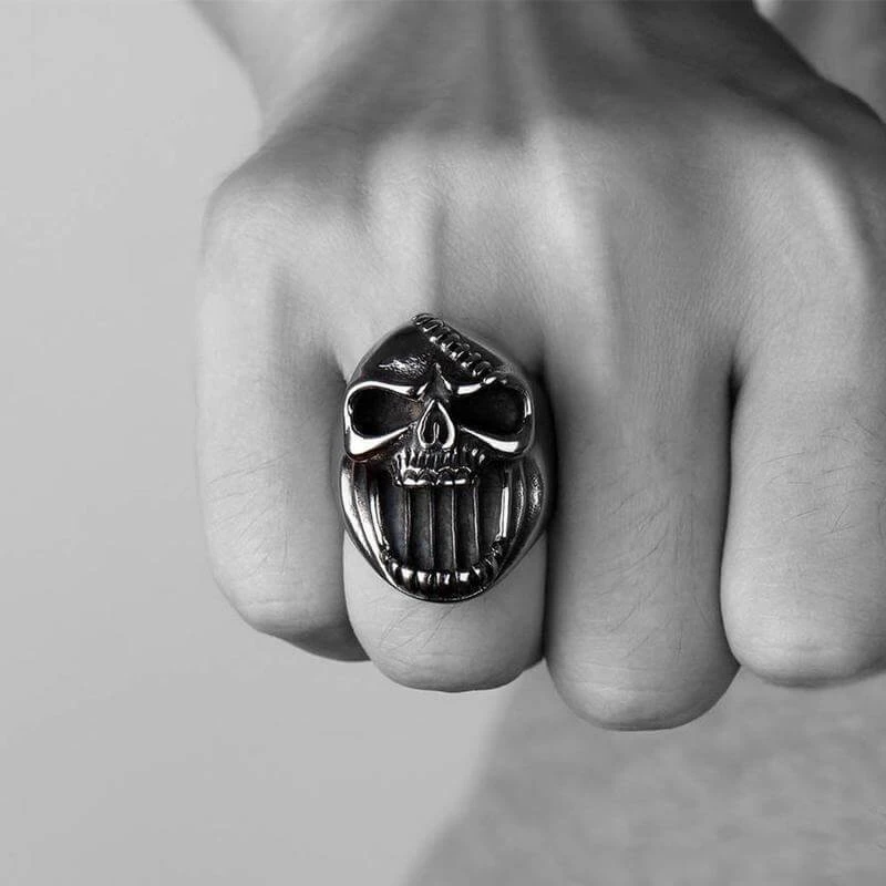 Détruis tout ce qui se trouve ton chemin et ibère ta rage grâce à cette magnifique bague crane en argent massif ! Jeune disciple, cette bague montrera ton vrai visage ! N’attends plus et procure-toi cette sublime bague ! Tu en auras besoin pour faire comprendre qui tu es !