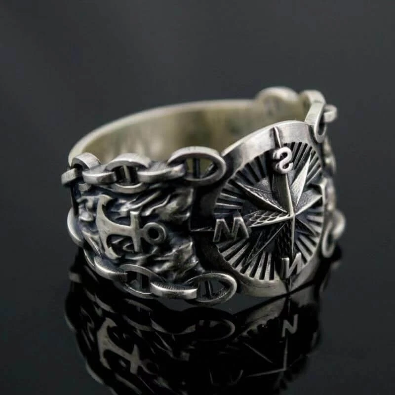 LA BAGUE PIRATE MARIN BOUSSOLE EN ACIER