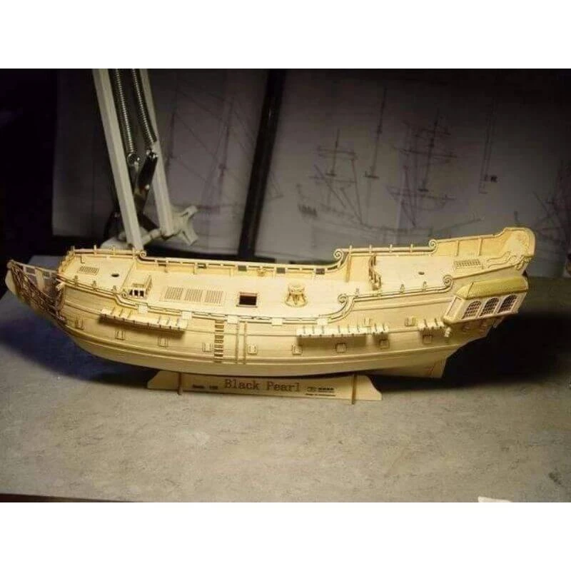 Voici la maquette du Black Pearl. C’est la maquette la plus belle de notre collection. La maquette bateau pirate Black Pearl à énormément de détails. Les voiles abîmés, la proue, etc.. Bref c’est une réelle pièce de collection ! Ce bateau sera parfait pour améliorer votre décoration. Attention maquette pas pour les débutants !