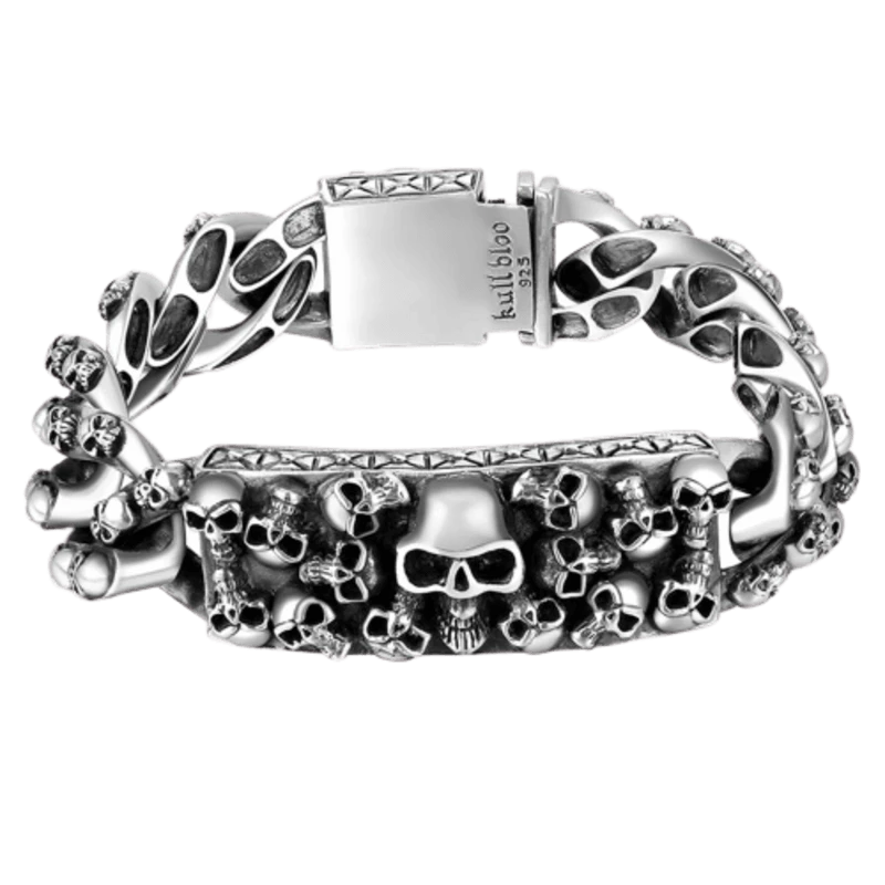 Découvre notre bracelet pirate champ de guerre pour homme. Avec le Jolly Roger incrusté dans le bracelet, plus personne ne viendra te chercher des embrouilles. Ce bracelet a la qualité incroyable sera parfait pour un vrai pirate ! Ce bracelet et incruster de tête de mort en argent ! Il est juste magnifique !
