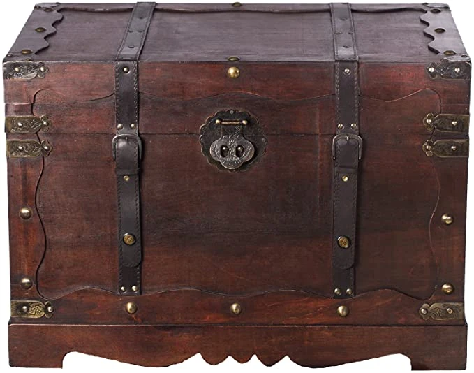 Voici la grande malle pirate ! Avec sa grande largeur, cette malle pirate et souvent utilisé comme table basse. En plus d’être un gros coffre de pirate, il te servira également de rangement supplémentaire pour tin intérieur ! cette malle pirate offre des finitions aux angles uniques ! Avec des gravures faites main par nos artisans ! Ce coffre et réaliser à la main !