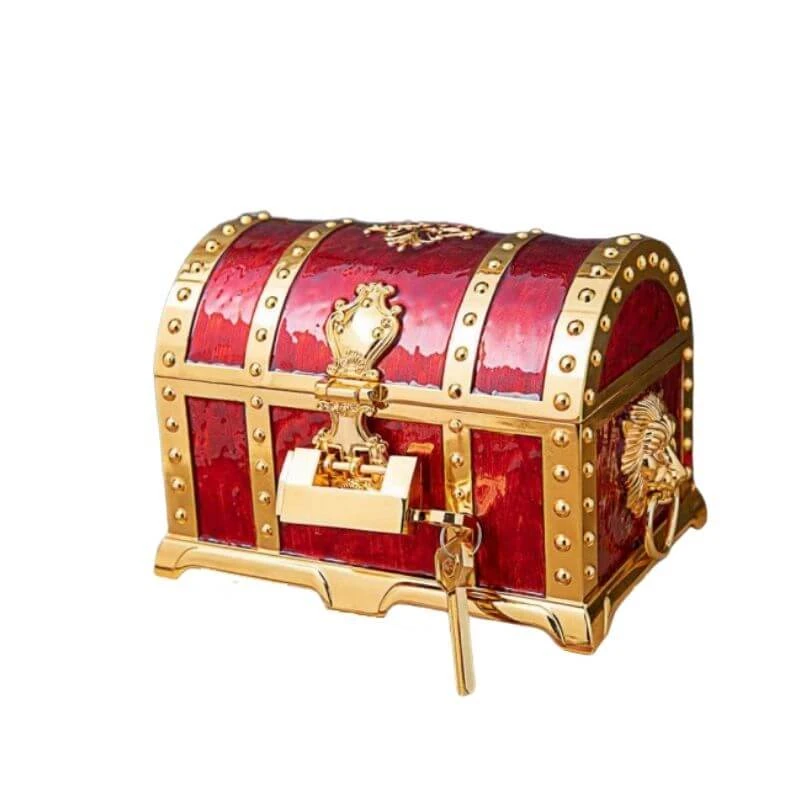 Voici le coffre au trésor pirate rouge ! Ce coffre pirate aux couleurs or et rouge offre un style rétro – vintage. Le rouge vif nous fait rappeler le sang qui a coulé durant les grandes batailles navales entre les pirates ! Ce coffre sera parfait pour y ranger des bijoux par exemple, ou ce que tu souhaites ! En plus d’être une pièce de décoration unique, il offre la possibilité d’avoir plus de rangement !