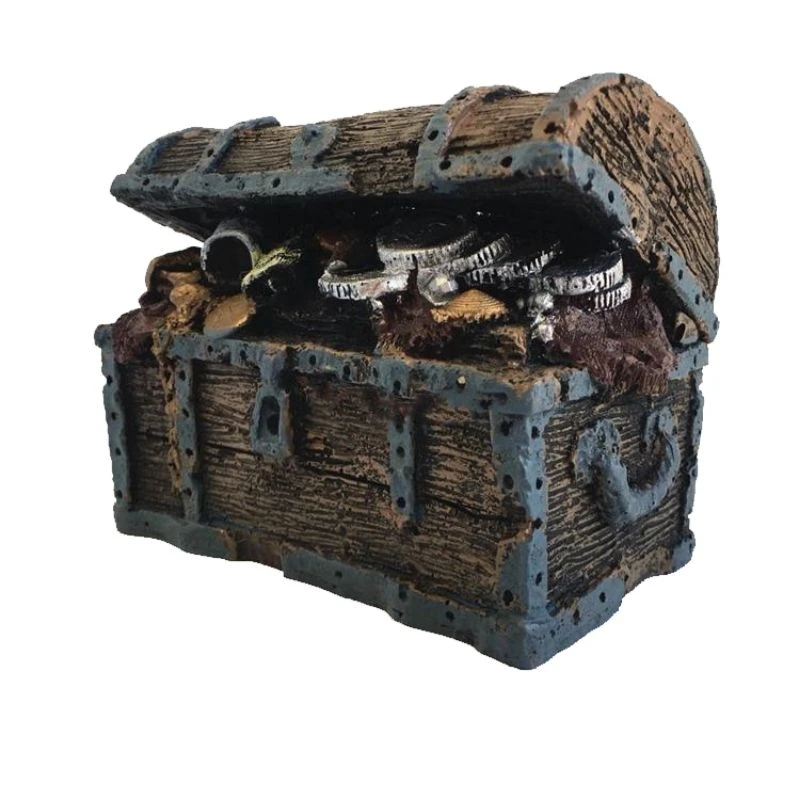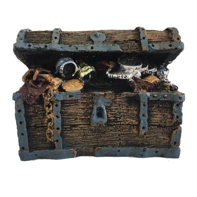 Voici le grand coffre au trésor pirate pour aquarium ! Si tu cherches à décorer ton aquarium pour le faire ressembler au fond marin des Caraïbes, tu es au bon endroit ! Avec ce magnifique grand coffre pirate pour aquarium, remplis plein de bijoux en or. Tu apporteras un design unique et classe ! Tes poissons seront les plus heureux, car ils pourront se cacher à l’intérieur ! Le coffre pirate et réaliser en résine naturelle, donc parfaite pour tes poissons !