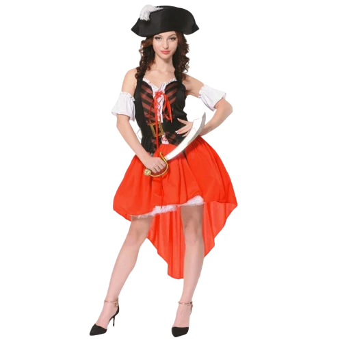 Le cosplay et une incarnation de personnages historique, célèbre ou bien romanesque présent dans les jeux video et séries. Dans le thème de la piraterie il y’a par exemple Anne Bonny qui a inspiré de considérablement de cosplayeuse. Pour débuter ta panoplie déguisement femme pirate, il te faudra un gilet marron et un chapeau noir, ainsi que des bottes avec des liserés. nous t’avons confectionner certain exemple pour te faciliter a peaufiner ton costume :