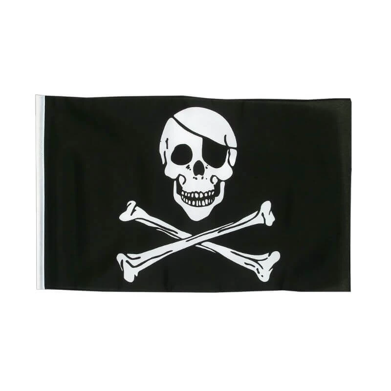 Voici le drapeau pirate Jolly Roger, ce fur le premier drapeau pirate et biens sur la plus connue. On ne connaît pas l’origine exacte de ce drapeau. Le pavillon Jolly Roger a été vu pour la première en 1700. C’était le grand pirate Emmanuel Wynne.
