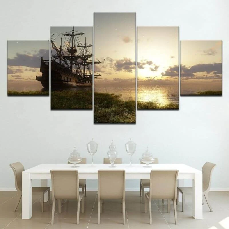 Voici le tableau pirate soleil levant ! Avec ses couleurs vives, cette toile de pirates sera parfaite pour tout style d’intérieurs ! Ce lever de soleil avec un énorme vaisseau pirate avec un lever de soleil juste magnifique ! On y voit également l’océan à perte de vue ! Ce tableau pirate te mettra dans une bonne humeur pour commencer la journée !
